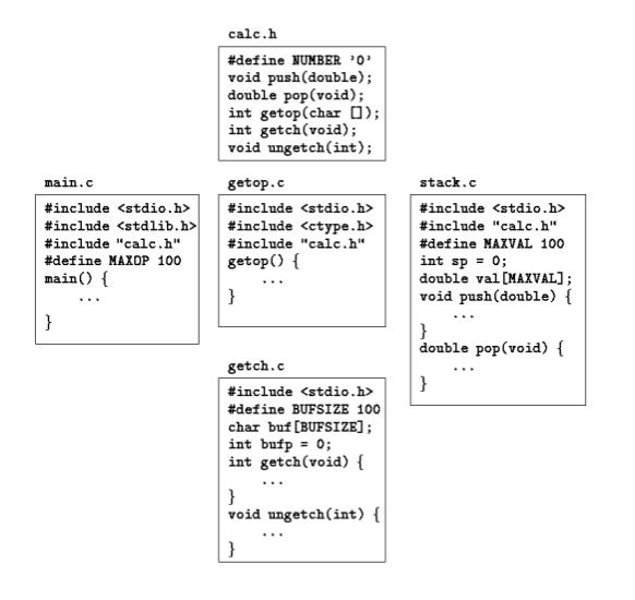 #include is the preferred way to tie the declarations together for a large program. It guarantees that all the source files will be supplied with the same definitions and variable declarations, and thus eliminates a particularly nasty kind of bug. Naturally, when an included file is changed, all files that depend on it must be recompiled.