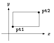 As another example, the function ptinrect tests whether a point is inside a rectangle, where we have adopted the convention that a rectangle includes its left and bottom sides but not its top and right sides: