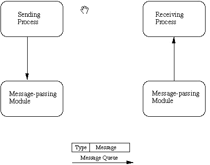 Two (or more) processes can exchange information via access to a common system message queue. The sending process places via some (OS) message-passing module a message onto a queue which can be read by another process (Figure 24.1). Each message is given an identification or type so that processes can select the appropriate message. Process must share a common key in order to gain access to the queue in the first place (subject to other permissions -- see below).