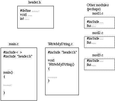 prog: prog.o f1.o f2.o c89 prog.o f1.o f2.o -lm etc. prog.o: header.h prog.c c89 -c prog.c f1.o: header.h f1.c c89 -c f1.cf2.o: --- ----
