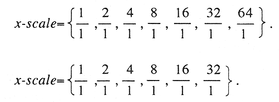 | x-scale | = | [ | num-{base,inc,limit}= {2,0,6} type=Geometric denom-{base,inc,limit}={1,1,0} type=Linear } |